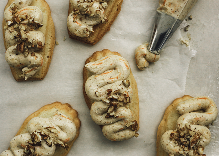 - When ready to serve, using a piping bag, top a Donsuemor Madeleine cake with cannoli filling, sandwich another madeline cake on top. Repeat with remaining cakes.