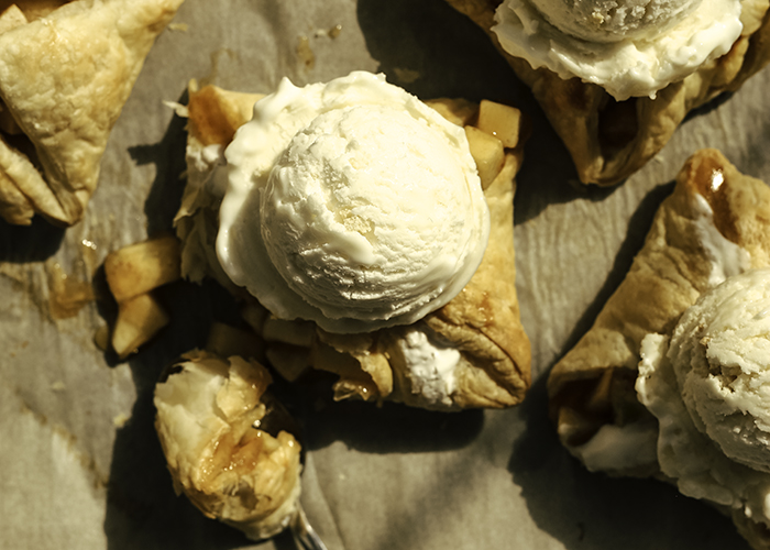 5. Bake for 20 minutes until the puff pastry is golden and the apples are fully cooked. Let cool for 3-5 minutes before serving. Optional: serve with a scoop of vanilla ice cream.